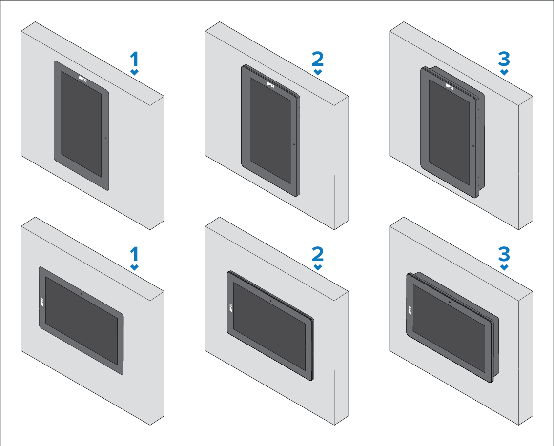 The performance display can be mounted flush with the mounting surface (flush mount), with the glass protruding from the mounting surface (surface mount), or with the instrument’s body protruding from the mounting surface (retrofit / offset mount).