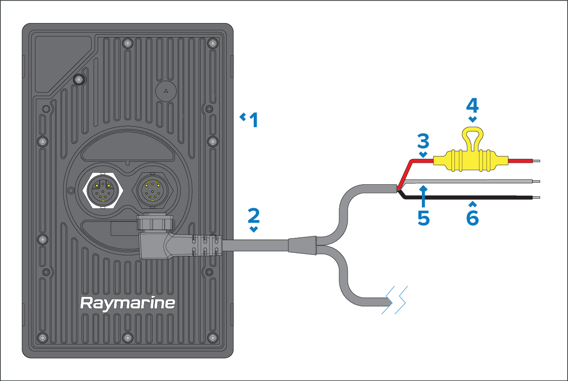 The performance display can be powered directly from a 12 V or 24 V power source by using a separately available RayNet and bare end power wires accessory cable.