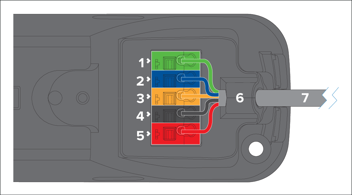 Feed the matching colored cable into the terminal’s