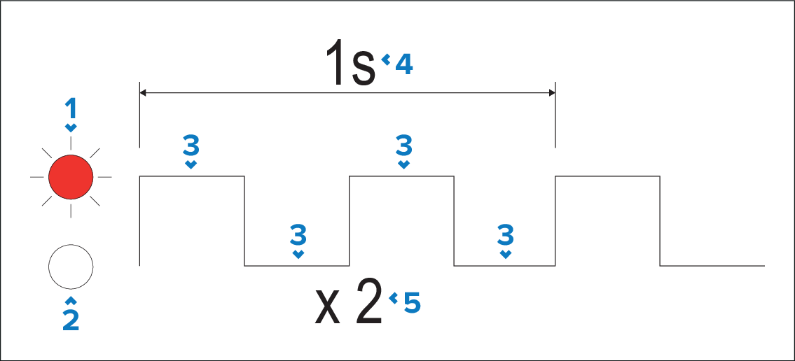 Diagnostic pattern — Indicates a diagnostic pattern based on the number and duration of peaks (indicating LED is switched on) and troughs (indicating LED is switched off) generated within the duration of the diagnostic pattern. In the example shown above, a peak followed by a trough occurs and then repeats again, indicating that the LED flashes twice within a period of one second.