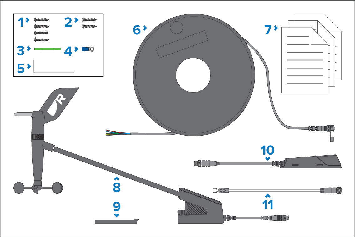 No.10 x 3/4" self tapping screws x 4 (for mounting the wind transducer). |